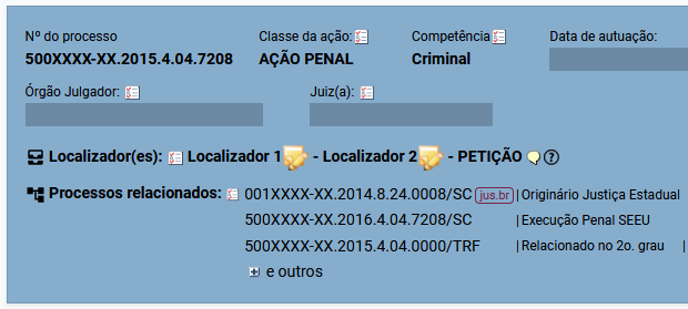 Na capa do processo, para cada processo relacionado oriundo de órgãos judiciários diversos, o número é transformado em um link que permite consultá-lo diretamente no Portal jus.br: