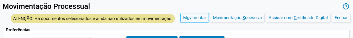 Alerta quando, ao abrir a tela de movimentação processual, já há documentos selecionados anteriormente e não utilizados